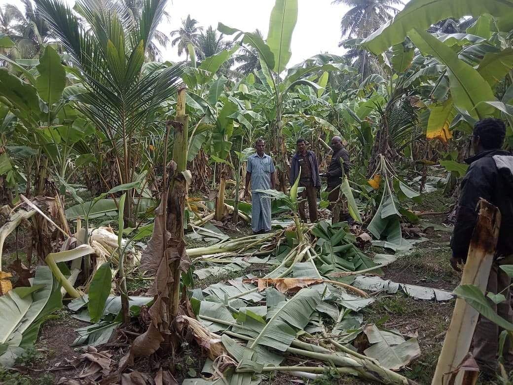 அதேபோல மாச்சம்பட்டு கோதண்டராமன் ரெட்டியார் நிலத்தில் குத்தகைக்குப் பயிரிட்டு இருந்த மனோகரன் பூந்தோட்டத்தையும் நாசப்படுத்தி உள்ளது.