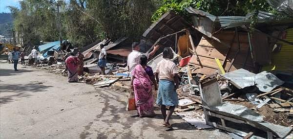 தேனி மாவட்டம் தமிழக-கேரள எல்லை குமுளியில் சாலையோரத்தில் 25 ஆண்டுகளாக ஆக்கிரமிக்கப்பட்டு வைத்திருந்த கடைகளை இந்திய தேசிய நெடுஞ்சாலை ஆணையம் மற்றும் காவல்துறையினர் அகற்றினர்.