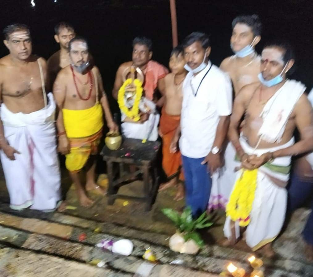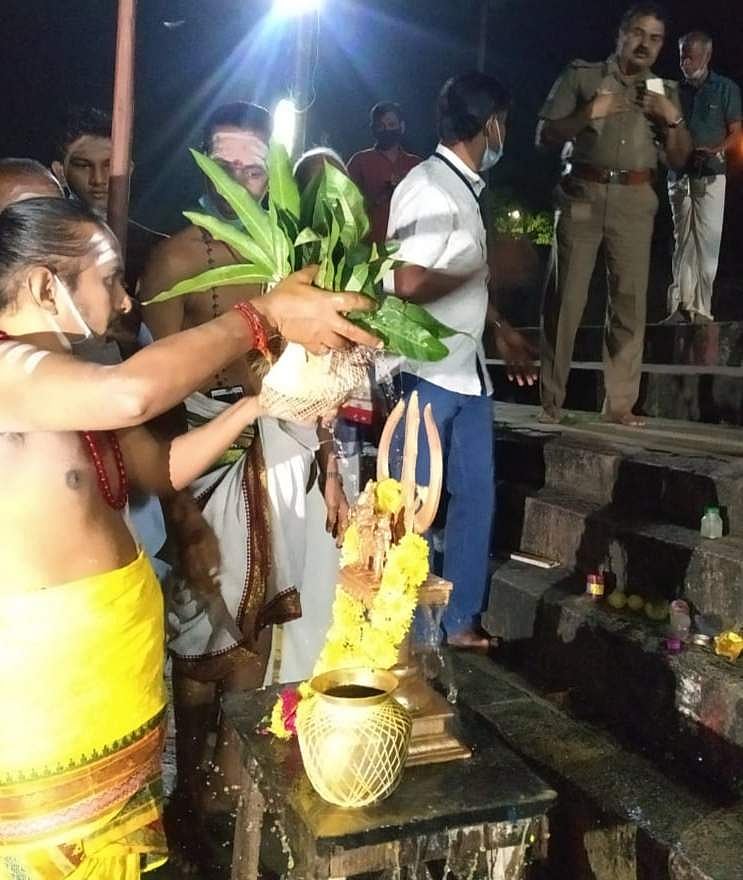 ஸ்ரீவாஞ்சியம் கோயிலில் தீர்த்தவாரி நடைபெற்ற போது.