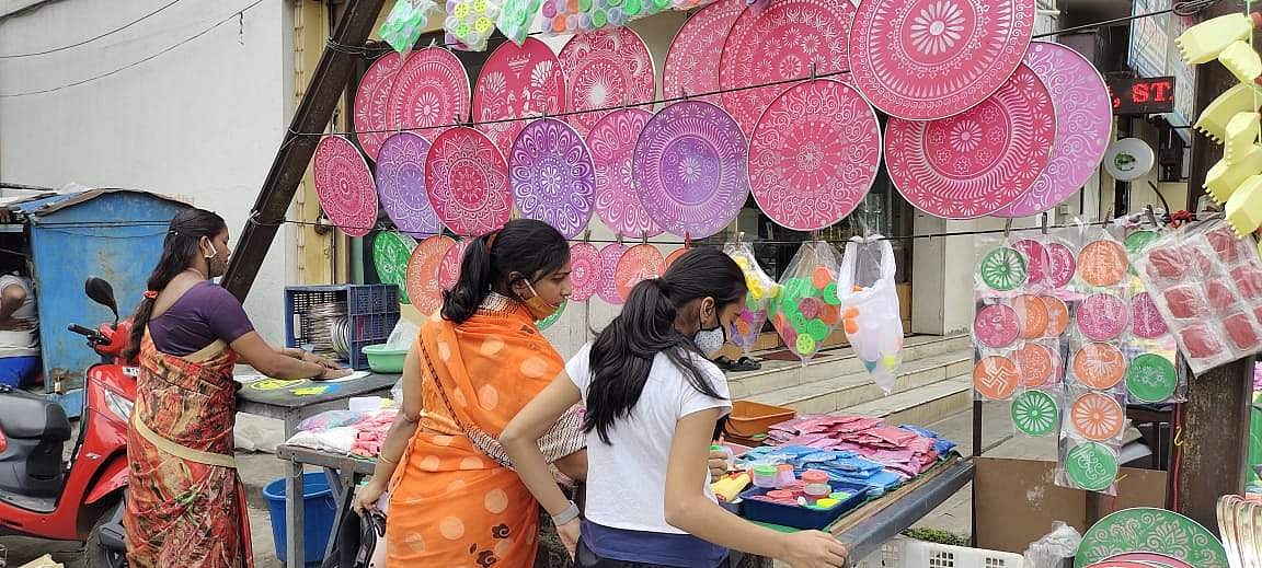 இதன் விற்பனையாளர்கள் இதுகுறித்து, 'சல்லடை வடிவ கோல அச்சுக்கள் சிறியது, 10 ரூபாய் முதல் அளவுக்கு ஏற்ப, 140 ரூபாய் வரை பல டிசைன்களில் விற்பனையாகின்றன. ‘பார்டர் லைன்’ இடும் தகரம், 10 ரூபாய்க்கும், கோலமிடும் பிளாஸ்டிக் பென்சில், 30 ரூபாய், கை வடிவிலான பிளாஸ்டிக், 20 ரூபாய் என பல்வேறு புது வரவுகள் கோலம் இடும் ஆர்வத்தை துாண்டும். வட மாநிலங்களில் இருந்து இந்த பொருட்கள் பெரும்பாலும் கொண்டுவரப்பட்டு இங்கு விற்கப்படுகிறது’ என்றார்.