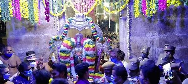 கரோனா பரவல் தடுப்புக்காக காலை பரமபதவாசல் திறப்பு நிகழ்ச்சியில் பக்தர்கள் அனுமதிக்கப்படவில்லை. ஆகமவிதிகளின்படி சொர்க்கவாசல் திறப்பும் சாமி புறப்பாடும் நடைபெற்றது.