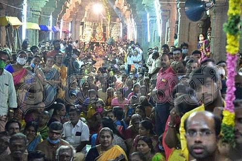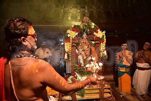 கடந்த 24 ஆம் தேதி சுவாமி-அம்மன் வெள்ளி ரிஷப வாகனத்தில் எழுந்தருளி, பஞ்சமூர்த்திகளுடன் வீதியுலா வந்து பக்தர்களுக்கு காட்சியளித்தனர். திருவிழா நாள்களில் சுவாமி கோவிலின் இரண்டாம் பிரகாரத்தில் உள்ள பெரிய சபாபதி சன்னதி முன்பு திருவெம்பாவை வழிபாடு நடைபெற்றது.