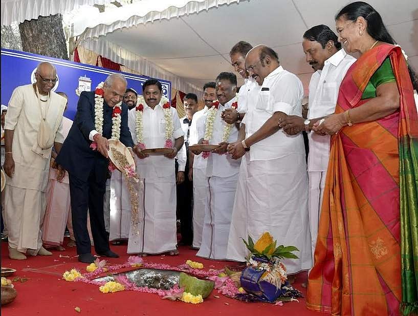 சிறந்த நவீன தொழில்நுட்ப வசதிகளுடன் கூடிய சமையல் கூடம் கட்டுவதற்கான பூமி பூஜை விழாவில் தமிழக ஆளுநர் பன்வாரிலால் புரோஹித், முதல்வர் பழனிசாமி, துணை முதல்வர் ஓ. பன்னீர்செல்வம், தமிழக அமைச்சர்கள் உள்ளிட்டோர் பங்கேற்றனர்.