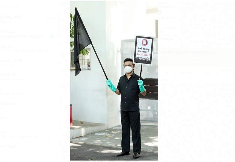 அதன்படி இன்று திமுக தலைவர் மு.க.ஸ்டாலின் சென்னை ஆழ்வார்பேட்டையில் உள்ள தனது இல்லத்தில் கறுப்புக்கொடி ஏற்றியும் கையில் கருப்புக்கொடி ஏந்தியும் போராட்டத்தில் ஈடுபட்டார். அப்போது அவர் கோரிக்கைகளை வலியுறுத்தி கோஷங்கள் எழுப்பினார். இதேபோல் சென்னை தேனாம்பேட்டை அன்பகத்தில் உதயநிதி ஸ்டாலினும், சிஐடி காலனியில் கனிமொழியும் போராட்டத்தில் ஈடுபட்டனர்.