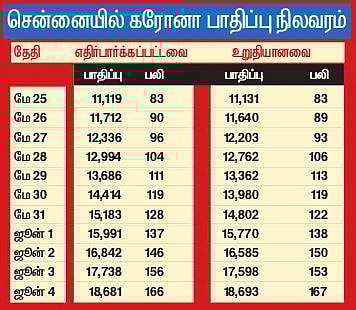 அதேபோன்று அந்த காலகட்டத்தில், தமிழகத்தில் பலி எண்ணிக்கை 1,949 ஆகவும், சென்னையில் 1,654-ஆகவும் இருக்கும் என கணிக்கப்பட்டிருக்கிறது.