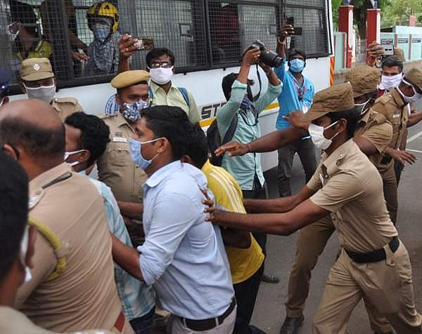 சேலத்தில் சொந்த ஊருக்கு அனுப்பி வைக்கக் கோரி மறியலில் ஈடுபட்ட பிகார் தொழிலாளர்களை காவல்துறையினர் வேனில் ஏற்றி அவரவர் பகுதிகளுக்குத் திருப்பி அனுப்பி வைத்தனர்.