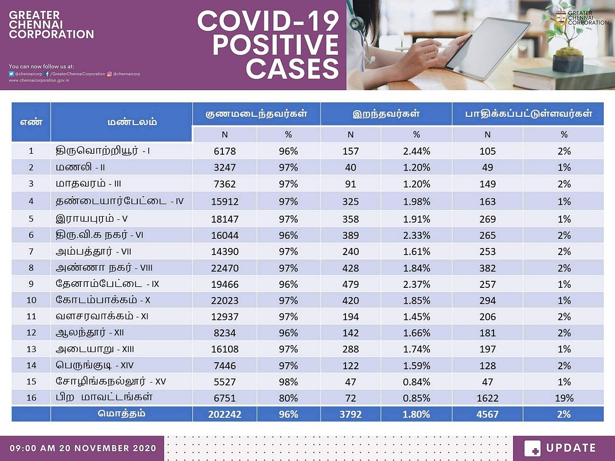 மண்டல வாரியாக கரோனா நிலவரம்..