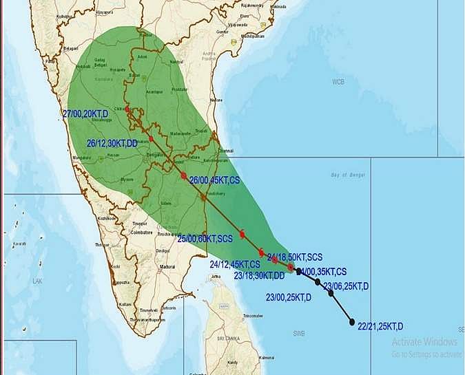 மீனவா்களுக்கு எச்சரிக்கை: தென்மேற்கு வங்கக் கடல் மற்றும் தமிழக, தெற்கு ஆந்திர கடலோரப் பகுதியில் மணிக்கு 100 கி.மீ. முதல் 110 கி.மீ வேகத்திலும், இடையிடையே 120 கிலோமீட்டா் வேகத்திலும் சூறாவளி வீசக்கூடும். எனவே, இந்தப் பகுதிகளுக்கு மீனவா்கள் வரும் 25-ஆம் தேதி வரை செல்ல வேண்டாம் என்று அறிவுறுத்தப்பட்டுள்ளது.