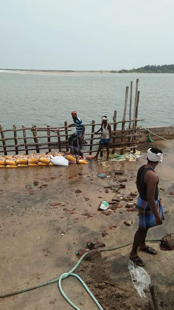 இதனால் முன்னெச்சரிக்கை நடவடிக்கையாக அப்பகுதி மீனவர்கள் மணல் மூட்டைகள் மற்றும் சவுக்குகளை கொண்டு கடல் அரிப்பை தற்காலிகமாக சீரமைத்து வைத்துள்ளனர். முகத்துவாரத்தில் கருங்கற்கள் கொட்டி அமைக்கப்பட்ட தூண்டில் வளைவு முறையாக அமைக்கப்படாததால் இவ்வாறு முகத்துவாரம் வழியாக தண்ணீர் புகுந்து கடல் அரிப்பு ஏற்படுவதாகவும் அதனை சீரமைக்க நடவடிக்கை எடுக்க வேண்டும் என மீனவர்கள் தெரிவித்தனர்.