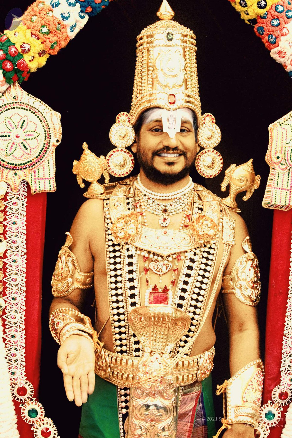 வெங்கடேசப் பெருமாள் என்றால்.. அவ்வளவு அதி அற்புத நகைகளையும், தலைக் கீரிடத்தையும் அணிந்து கொண்டு புகைப்படத்துக்கு போஸ் கொடுத்துள்ளார். கண்ணை மூடியபடி, கண்ணைத் திறந்து என அவர்கள் தனத பக்த கோடிகளுக்கு அருளாசி வழங்கியுள்ளார்.