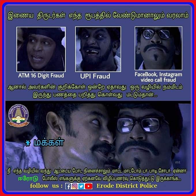 அந்த வகையில் ஈரோடு மாவட்ட காவல்துறை இன்று ஒரு எச்சரிக்கை மீம்ஸ் வெளியிட்டுள்ளனர்.