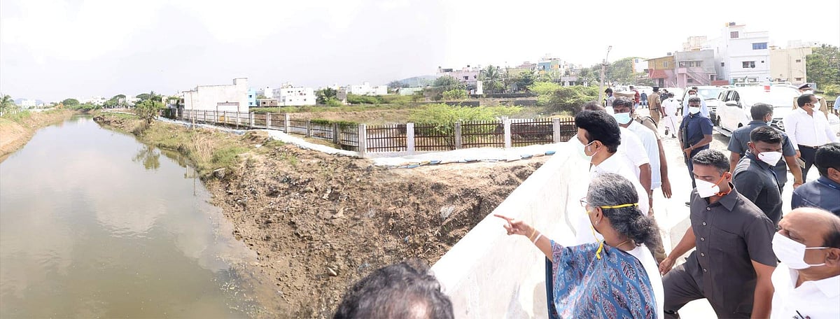 காஞ்சிபுரம் மாவட்டம், வரதராஜபுரம் ஊராட்சி, மகாலட்சுமி நகர் மேம்பாலப் பகுதியில் நீர்வள ஆதாரத்துறையால் மேற்கொள்ளப்பட்ட வெள்ளத்தடுப்புப் பணிகளையும் முதல்வர் பார்வையிட்டார்.
