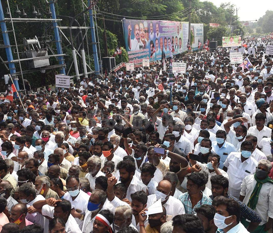 ஆர்ப்பாட்டத்தில் முன்னாள் அமைச்சர் செம்மலை, எம்பி சந்திரசேகரன் எம்எல்ஏக்கள் பாலசுப்பிரமணியம்-சித்ரா மற்றும் முன்னாள் எம்எல்ஏக்கள், நிர்வாகிகள் என ஆயிரக்கணக்கான தொண்டர்கள் பங்கேற்றனர்.