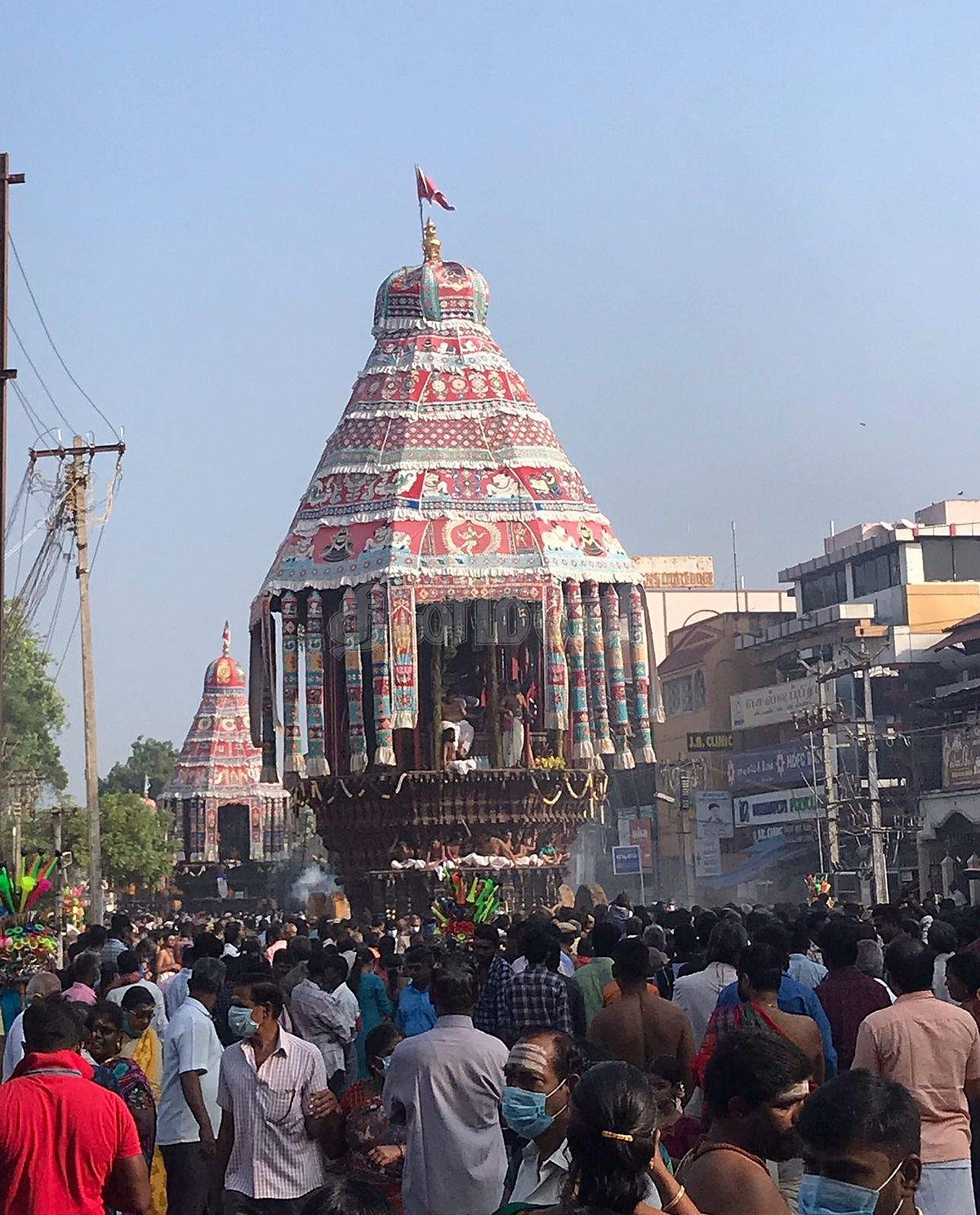 உழவாரப்பணி மற்றும் திருமுறை இன்னிசை: தேர்களுக்கு முன்பு வீதிகளில் இந்து ஆலய பாதுகாப்புக்குழுவினர், தில்லைத் திருமுறைக்கழகம், அப்பர் தொண்டு நிறுவனத்தைச் சேர்ந்த சிவனடியார்கள் மற்றும் திரளான பெண்கள் வீதிகளை நீரினால் கழுவி கோலமிட்டு உழவாரப்பணியை மேற்கொண்டனர். தேர்களுக்கு சந்திர பாலசுப்பிரமணியன் முன்னிலையில் ஓதுவார்கள் திருமுறை இன்னிசை ஆராதனை நிகழ்த்தி சென்றனர்.
