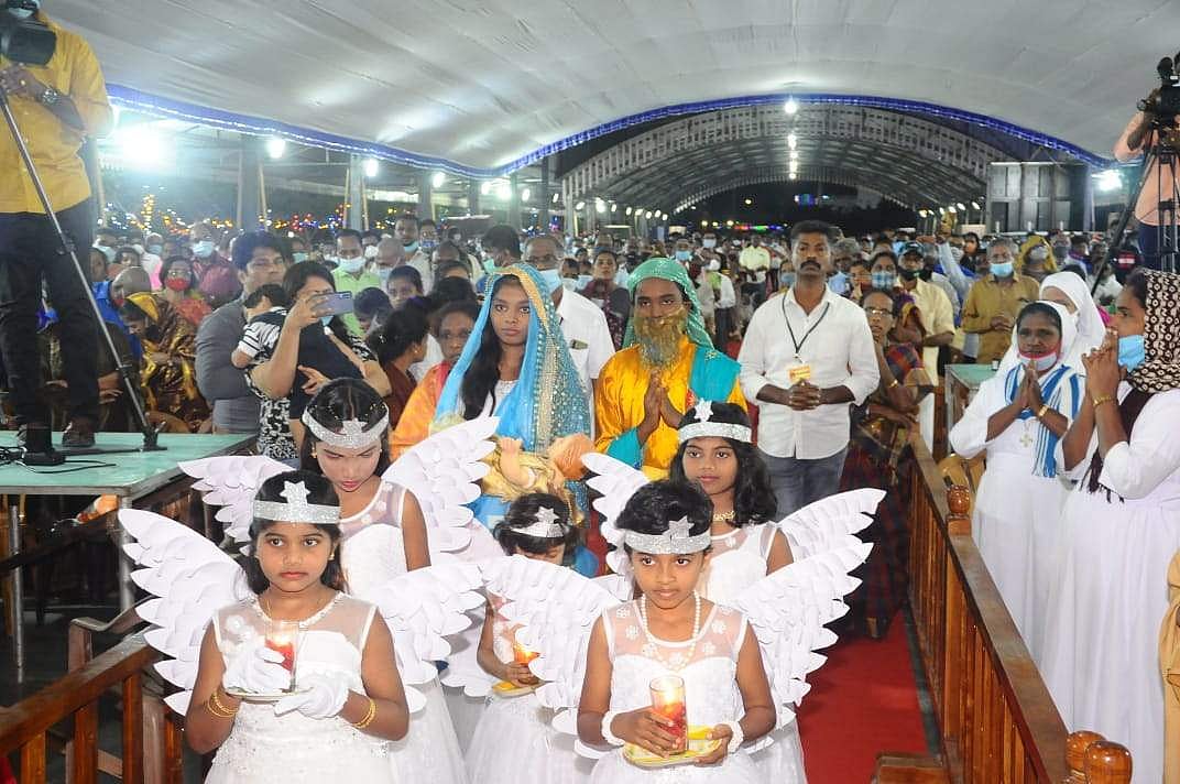 வேளாங்கண்ணி புனித ஆரோக்கிய அன்னை பேராலய வளாகம், புனித சேவியர் திடலில் நடைபெறும் கிறிஸ்துமஸ் சிறப்பு வழிபாட்டில் பங்கேற்றவர்கள்.