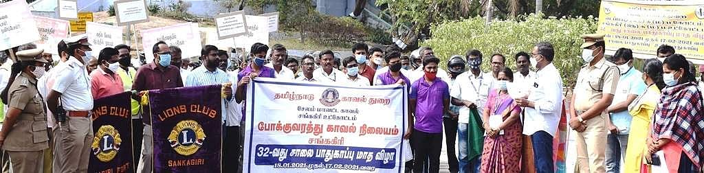 சங்ககிரி: 32வது சாலைப் பாதுகாப்பு வார விழாவினையொட்டி சங்ககிரி நெடுஞ்சாலை, காவல், வட்டார போக்குவரத்து துறைகளின் சார்பில் சாலையில் வாகனங்களை பாதுகாப்பாக ஓட்டுவது குறித்த விழிப்புணர்வு பேரணி சங்ககிரியில் புதன்கிழமை நடைபெற்றது.