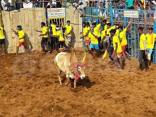 திருச்சி மாவட்டம் மணப்பாறை அடுத்த பொத்தமேட்டுப்பட்டி புனித வியாகுல மாதா ஆலய திடலில், மாபெரும் ஜல்லிக்கட்டு விழா தொடங்கியது.
