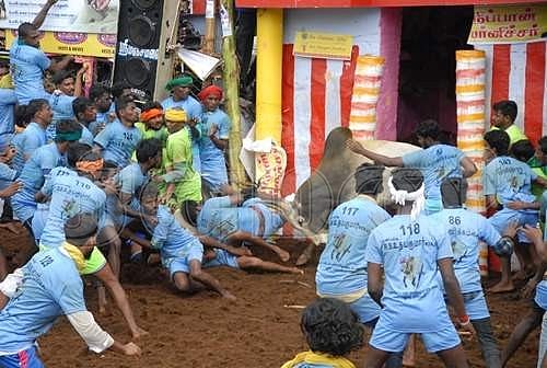மாட்டுபொங்கலை முன்னிட்டு மதுரை மாவட்டம் பாலமேட்டில் ஜல்லிகட்டு போட்டி தொடங்கி நடைபெற்று வருகிறது.