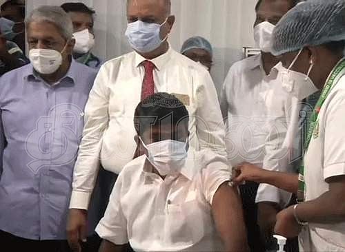 சென்னை ராஜீவ்கராந்தி அரசு மருத்துவமனையில் சுகாதாரத்துறை அமைச்சர் சி.விஜயபாஸ்கர் சுகாதாரப் பணியாளர்கள் மத்தியில் கரோனா தடுப்பூசி எடுத்துக்கொண்டார். பின்னர் அவர் செய்தியாளர்களுக்கு பேட்டி அளித்தார்.