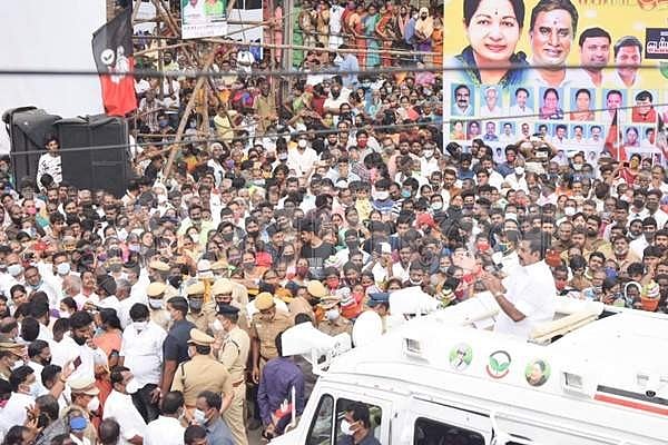 கோவை தெற்கு, தொண்டாமுத்தூர் தொகுதிகளுக்குள்பட்ட ராஜவீதி பகுதிகளில் தேர்தல் பிரசாரம் மேற்கொண்ட முதல்வர் எடப்பாடி பழனிசாமி.