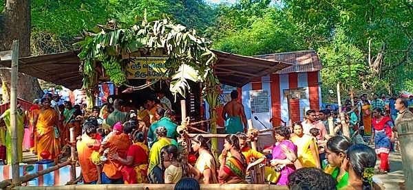 லோயர் கேம்ப் வழிவிடும் முருகன் கோயிலில் பக்தர்கள்.