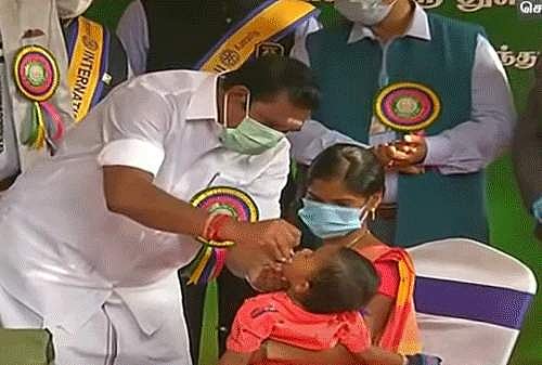 தமிழகம் முழுவதும் 5 வயதுக்குள்பட்ட குழந்தைகளுக்கு போலியோ சொட்டு மருந்து வழங்கும் முகாமை சென்னையில் முதல்வர் எடப்பாடி கே.பழனிசாமி தொடங்கிவைத்தார்.