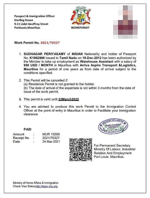 இந்த நிலையில் விவேக்குக்கு தெரிந்த கோட்டப்பாளையத்தைச் சேர்ந்த சுதாகர், செந்தில்குமார், திலிப்குமார் உள்ளிட்ட 11 பேர் வெளிநாடு சென்று பொருள் ஈட்ட விரும்பி விவேக், விமல் மூலமாக ராயல் விசாஸ் நிறுவனத்தை அணுகியுள்ளனர். இவர்களின் வசதிக்கேற்ப மொரீசியஸ் நாட்டில் வேலை வாங்கித் தருவதாக கூறி தலா ரூ. 1.40 வரையிலும் பணத்தை பெற்றுக் கொண்டு 4 பேருக்கு ஏற்றுமதி நிறுவனத்திலும், 5 பேருக்கு உணவக நிறுவனங்களிலும், 2 பேர் ஓட்டுனர் வேலைக்கும் விசா பெற்றுத் தந்துள்ளனர்.