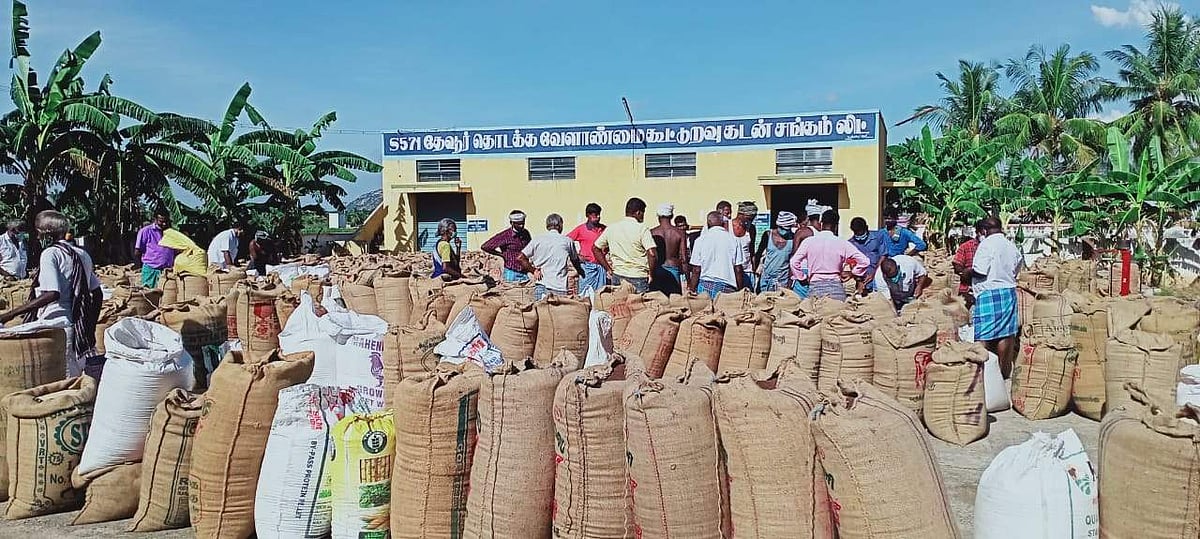 எடப்பாடி அடுத்த தேவூர் கூட்டுறவு வங்கி வளாகத்தில் செயல்பட்டு வரும், வேளாண் பொருள்களுக்கான விற்பனை மையத்தில், அப்பகுதி விவசாயிகள் தாங்கள் விளைவித்த விளைபொருட்களை ஏலத்தின் வாயிலாக விற்பனை செய்து வருகின்றனர்.
