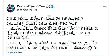 காவல் துறையின் வன்முறைகள் நிறுத்தப்பட வேண்டும்: கனிமொழி