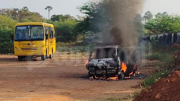 தீப்பிடித்து எரியும் மாருதி வேன்.