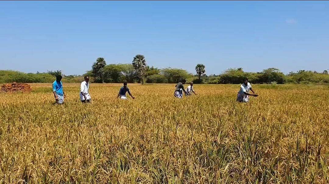 மயிலாடுதுறை மாவட்டம் சீர்காழி அருகே கீரங்குடி கிராமத்தில் சம்பா நெற்பயிர்கள் சுமார் 10 ஆயிரம் ஏக்கரில் பயிரப்பட்டுள்ளது. கடந்த புயல் மழையால் கீரங்குடி கிராமத்தில் தெற்கு ராஜன் வாய்க்கால் உடைப்பால் கிராமம் முழுவதும் வெள்ளநீர் சூழ்ந்து விவசாயம் முழுவதும் தண்ணீரில் மூழ்கி அழிந்த நிலையில் சுமார் ஆயிரம் ஏக்கர் விவசாய நிலங்களில் பாதிப்பிலிருந்து தப்பித்து தற்போது அறுவடைக்கு தயாராக உள்ள நிலையில் வட மாநிலத்தில் வெட்டுகிளிகள் விவசாயத்தை அளித்தது போல கீரங்குடி கிராமத்தில் உள்ள நெற்பயிர்களில் லட்ச கணக்கில் வெட்டுகிளிகள் படையெடுத்து நெற்பயிர்களை கடித்து நாசம் செய்து வருவதால் நெல் மணிகள் அனைத்தும் பதறாகி வருவதால் விவசாயிகள் கவலை அடைந்துள்ளனர்.