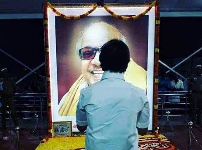 இதன்பின்னர் முதல்வர் ஸ்டாலின், சென்னை மெரினாவில் உள்ள கருணாநிதியின் நினைவிடத்துக்குச் சென்றார். கலைஞரின் நினைவிடத்தில் மலர் தூவி மரியாதையை செலுத்தினார்.