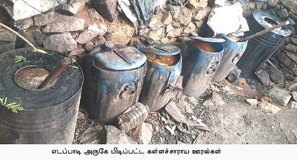 எடப்பாடி அருகே 1500 லிட்டர் கள்ளச்சாராயம் பிடிபட்டது