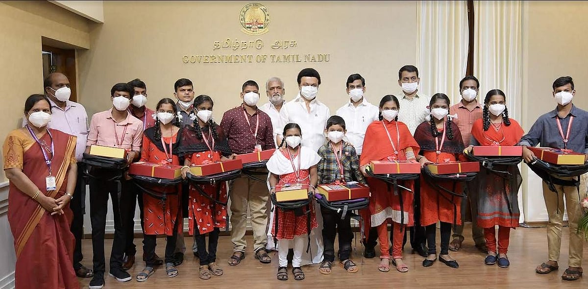 காஞ்சிபுரம் ஏகாம்பரநாதர் மெட்ரிகுலேசன் மேல்நிலைப் பள்ளியை தமிழக முதல்வர் மு.க.ஸ்டாலின் இன்று தொடங்கி வைத்து மாணாக்கர்களுக்கு சீருடை மற்றும் புத்தகப்பை வழங்கினார்.