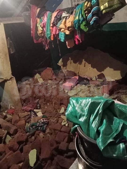 இடிந்து விழுந்த அனன்யா வீட்டு சுவர்.
