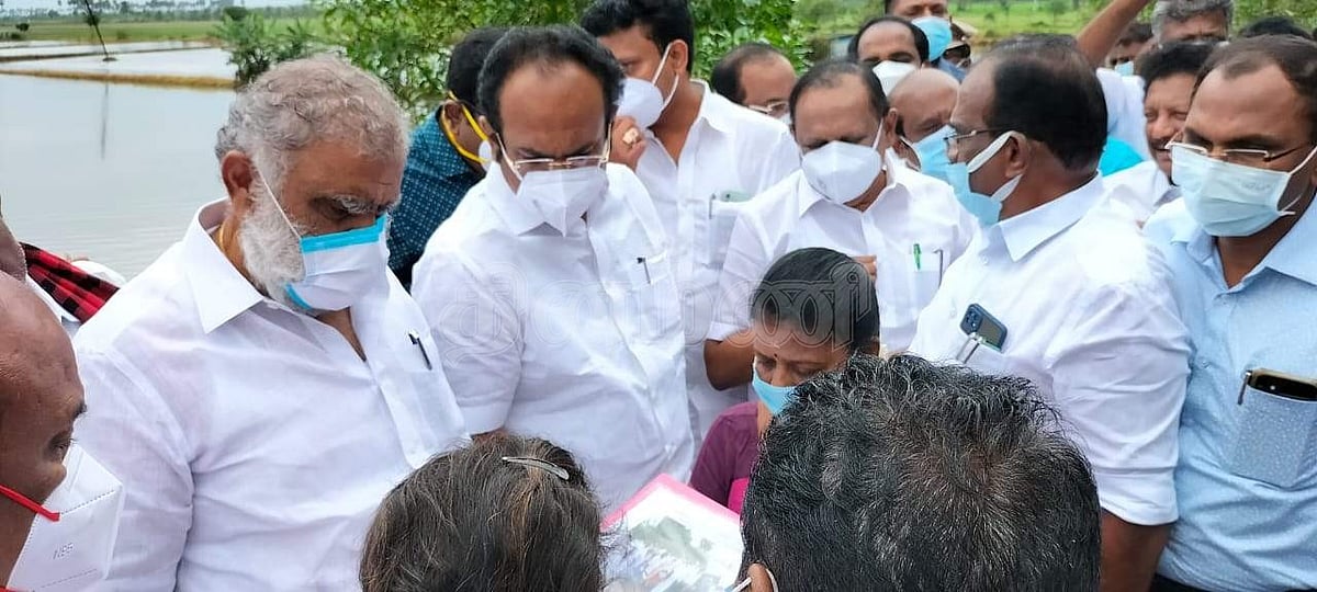 மதுக்கூர் அருகே அண்டமி கிராமத்தில் ஆய்வு செய்த அமைச்சர்கள் குழுவினர்.