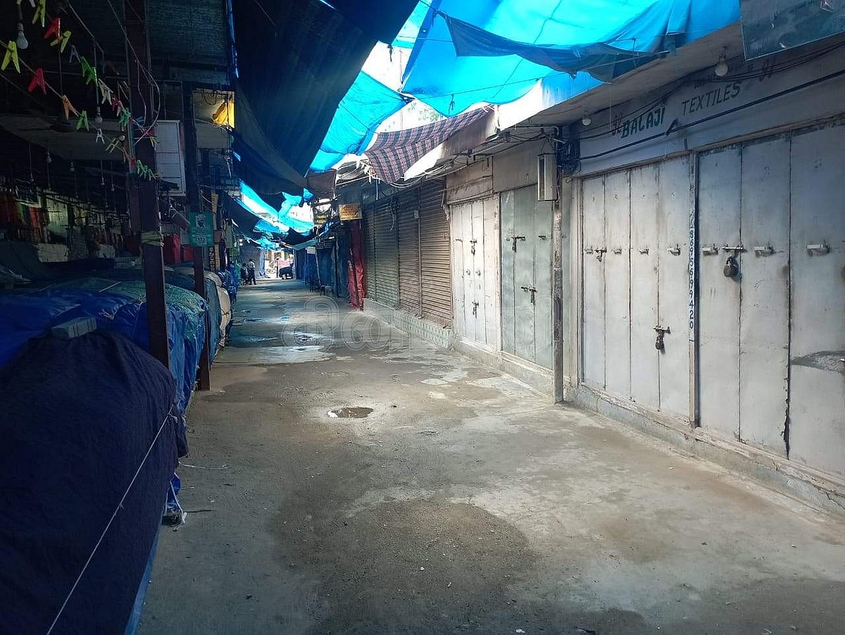 கடையடைப்பு போராட்டத்தினால் அடைக்கப்பட்டுள்ள ஜவுளிகடைகள்.
