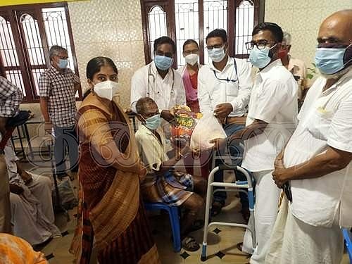 காந்தி ஜயந்தியையொட்டி, தொழுநோயாளிகளுக்கு மருத்துவ உபகரணங்கள், மளிகை பொருள்கள், அரிசி வழங்கப்பட்டது.