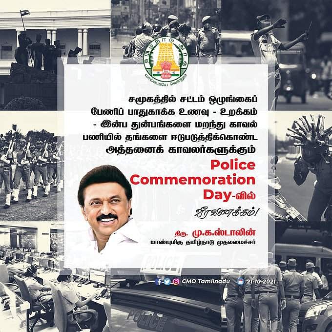 காவலர் வீரவணக்க நாளை முன்னிட்டு தமிழக காவல்துறையினருக்கு தமிழக முதல்வர் மு.க.ஸ்டாலின் பாராட்டு தெரிவித்துள்ளார்.