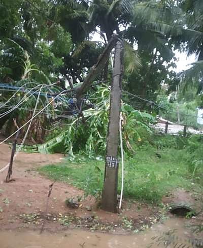 சிவகங்கை மாவட்டம் இளையான்குடி, சாலைகிராமம் பகுதிகளில் கொட்டித் தீர்த்த மழையால் மரங்கள் வேரோடு சாய்ந்து மின்கம்பங்கள் முறிந்து விழுந்தன.