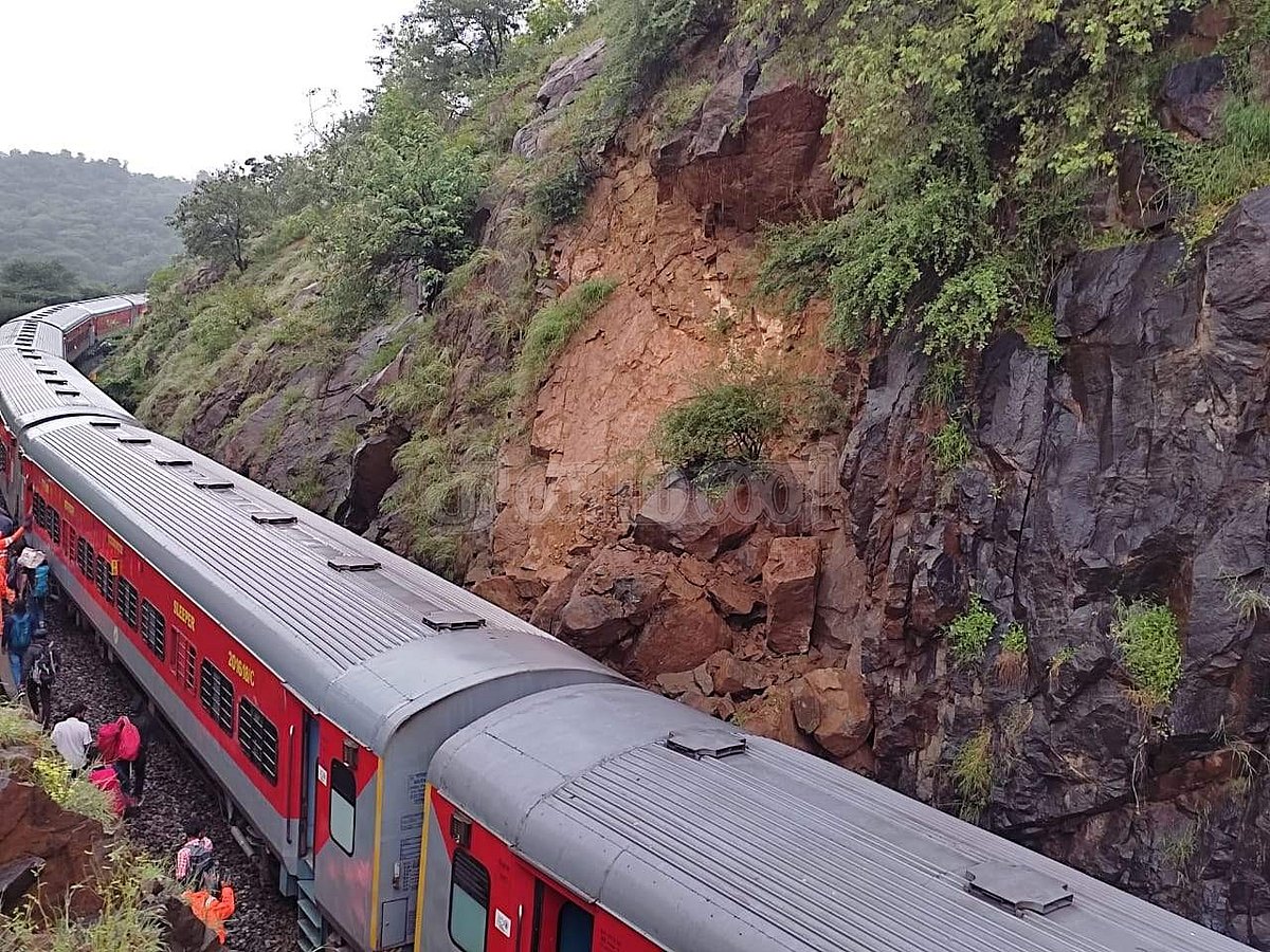 திடீரென கற்பாறைகள் விழுந்ததால் கண்ணூர்-யஷ்வந்த்பூர் விரைவு ரயில் மலைப்பாதையில் தடம் புரண்டது