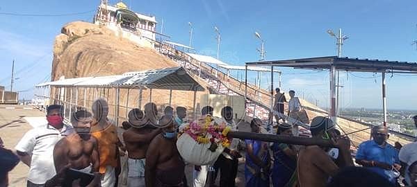 திருச்சி மலைக்கோட்டை உச்சிப்பிள்ளையார் கோயிலில் ஆரவாரமின்றி நடைபெற்ற விநாயகர் சதுர்த்தி வழிபாடு!