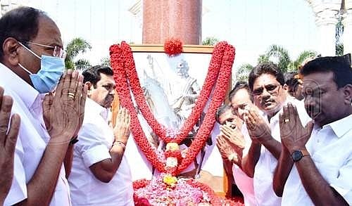 தீரன் சின்னமலை திருவுருவப் படத்திற்கு எடப்பாடி பழனிசாமி மரியாதை செலுத்துதல்