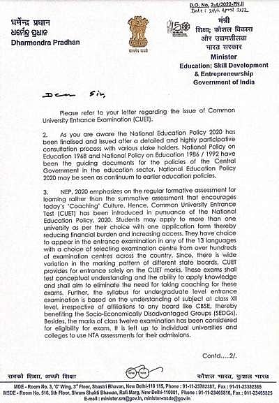 பொது பல்கலைக்கழக நுழைவுத்தேர்வு போன்ற தேர்வுகளை அறிமுகப்படுத்துவதால், மாணவர்களுக்கு பயிற்சியளிக்க தனியார் பயிற்சிக் கூடங்கள் பெருகிவிடும். அவற்றில் அதிக கட்டணம் நிர்ணயிக்கப்படும். வசதி படைத்த மாணவர்கள் மட்டுமே பயிற்சிக் கூடங்களில் கட்டணம் செலுத்தி பயில முடியும். கிராமப்புற மாணவர்கள் பயிற்சிக் கூடங்களில் சேர்ந்து பயில இயலாததால், அவர்கள் பெரிதும் பாதிக்கப்படுவர். உயர்கல்வி என்பது கிராமப்புற மாணவர்களுக்கும் பிற்படுத்தப்பட்ட குடும்பத்தைச் சேர்ந்த மாணவர்களுக்கும் எட்டாக்கனி ஆகிவிடும் என என அனைத்து தரப்பிலும் கேள்வி எழுந்த நிலையில், தமிழக முதல்வர் மு.க. ஸ்டாலின் இந்த பொது பல்கலைக்கழக நுழைவுத் தேர்வு, நீட் தேர்வு உள்ளிட்டவைகளை நீக்க வேண்டும் என பிரதமர் நரேந்திர மோடிக்கு கடிதம் எழுதியிருந்த நிலையில் தர்மேந்திர பிரதான் விளக்கமளித்துள்ளார்.