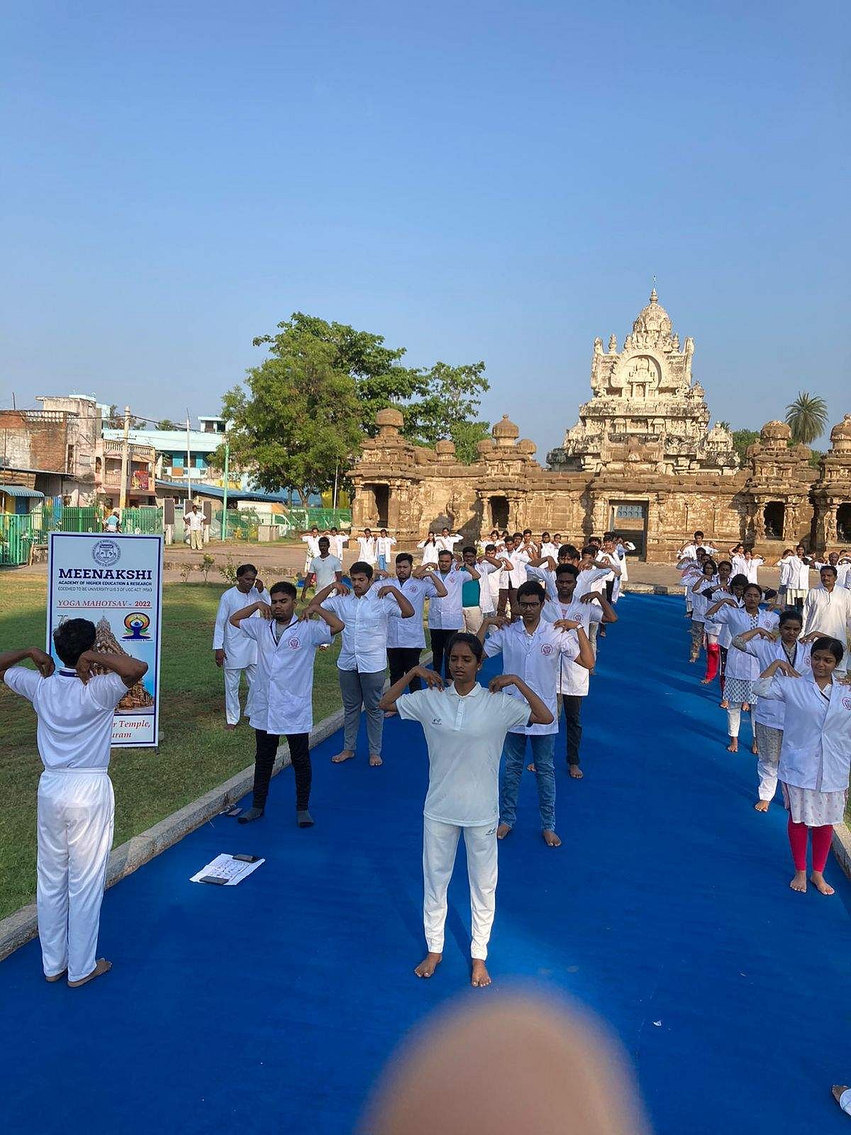 மத்திய அரசின் ஆயுஷ் அமைச்சகத்தால் யோகா நிகழ்ச்சியை நடத்துவதற்கு தேர்வு செய்யப்பட்டிருக்கும் 100 நிறுவனங்களில் ஒன்றாக மீனாட்சி உயர்கல்வி மற்றும் ஆராய்ச்சி நிறுவனம் இடம்பிடித்துள்ளது.