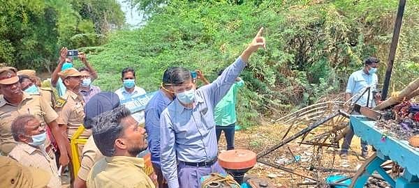 களிமேடு கிராம மக்களிடம் விபத்து எப்படி நிகழ்ந்தது என்பது குறித்த விவரங்களைக் கேட்டறியும் குமார் ஜெயந்த்.