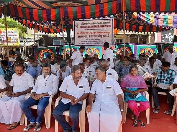 இலவச வேஷ்டி, சேலை உற்பத்தியை தொடங்க வலியுறுத்தி ஈரோட்டில் விசைத்தறி உரிமையாளர்கள் உண்ணாவிரதம்