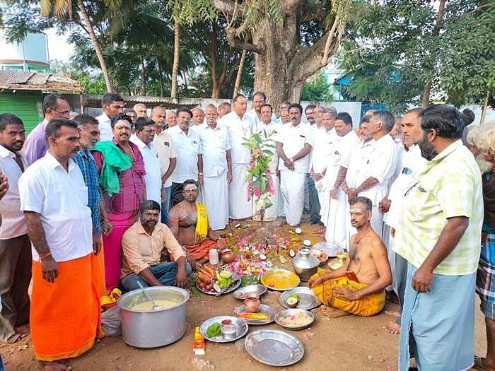 பூமி பூஜையில் பங்கேற்ற தம்மம்பட்டி அனைத்து சமுதாயத்தினர்.
