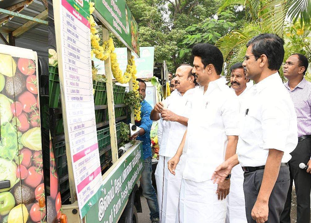 வேளாண்மை விற்பனை மற்றும் வேளாண் வணிகத்துறையில் சார்பில் கோயம்புத்தூர், திருச்சிராப்பள்ளி, செங்கல்பட்டு, திருப்பூர் மற்றும் சேலம் ஆகிய மாவட்டங்களில் நுகர்வோரின் இல்லத்திற்கே சென்று பண்ணைக் காய்கறிகளை விற்பனை செய்திடும் பொருட்டு 40 இலட்சம் ரூபாய் மதிப்பில் 20 நடமாடும் காய்கனி அங்காடிகளை முதல்வர் இன்று தொடக்கிவைத்தார்.