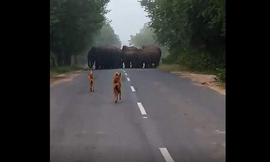 தமிழக - ஆந்திர எல்லையில் சோதனைச் சாவடி அருகே முசலமடுகு பகுதியில் குடியாத்தம்-பலமனேரி சாலையில் வனப்பகுதியில் சுமார் 20க்கும் மேற்பட்ட யானைகள் கூட்டமாக சாலையைக் கடந்தன.
